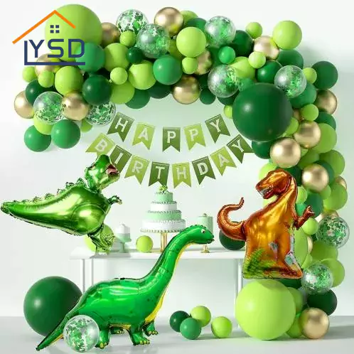 Τα μπαλόνια δεινοσαύρων (συμπεριλαμβανομένων μπαλόνια, αντλίες κ.λπ.) είναι το επίκεντρο του κόμματος, με ένα σαφές θέμα, ασφαλές και βολικό και χαμηλό κόστος. Το σετ περιλαμβάνει συνήθως υψηλής ποιότητας λάτεξ ή μπαλόνια αλουμινίου αλουμινίου τυπωμένα με διάφορα μοτίβα δεινοσαύρων, χειροκίνητες ή ηλεκτρικές αντλίες, κάτοχοι μπαλονιών ή βάσεις για τη διόρθωση και κορδέλες για εύκολη κρέμονται. Το υλικό του μπαλονιού πληροί τα πρότυπα ασφαλείας, έχει πλούσια χρώματα και τα τυπωμένα μοτίβα είναι καθαρά και ζωντανά και μπορούν να αντέξουν την κανονική χρήση κατά τη διάρκεια του κόμματος. Τα πλήρη στοιχεία σημαίνουν ότι οι χρήστες δεν χρειάζεται να ανησυχούν για την προετοιμασία διάσπαρτων αξεσουάρ.