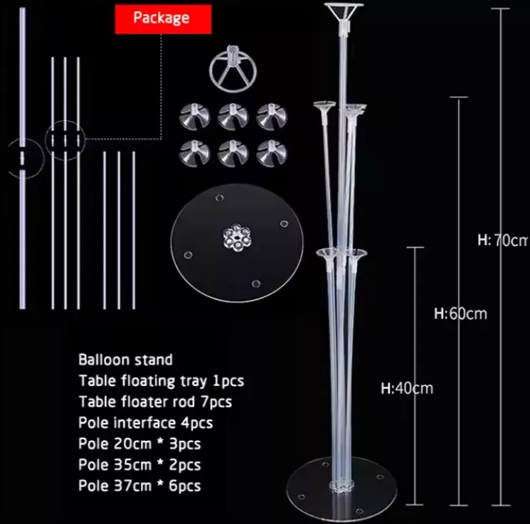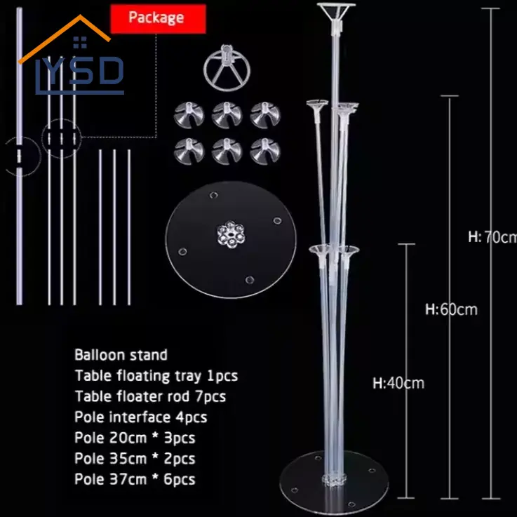 Ο κάτοχος μπαλονιών είναι συνήθως διαφανής. Τα μπαλόνια που συσσωρεύονται μαζί τείνουν να φαίνονται άκαμπτα. Ο διαφανής κάτοχος μπαλονιών της YSD δεν είναι μόνο ένα ύψος. Υπάρχουν διαφορετικά μήκη σε ένα σύνολο κατόχων μπαλονιών. Για παράδειγμα, το καλύτερο που πωλούμε είναι ένας συνδυασμός 70cm, 60cm και 40cm. Υπάρχει ένα 70cm, 3 60cm και 3 40cm. Συνδυάζονται με μπαλόνια για να κάνουν τα μπαλόνια διάσπαρτα και τακτοποιημένα. Αυτό το "κλιμακωτό" αποτέλεσμα επιτυγχάνεται εξ ολοκλήρου από αυτά τα διαφανή περίπτερα διαφορετικά μήκη.