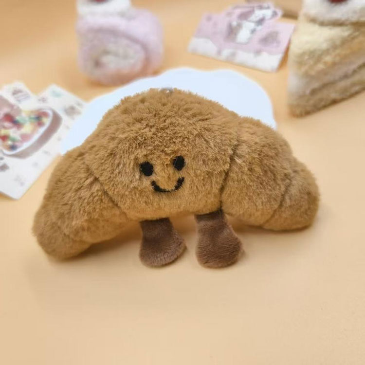 Ως βελούδινο προϊόν, το κρεμαστό μπρελόκ σε σχήμα γούνινο ψωμί χρησιμοποιεί κοντό βελούδινο ύφασμα υψηλής ποιότητας. Αισθάνεται απαλό και φιλικό προς το δέρμα, με πυκνή και λεία επιφάνεια τρίχας και δεν ρίχνει τρίχες ή χάπι. Επιπλέον, έχει καλή διαπερατότητα αέρα και δεν προκαλεί ενόχληση όταν έρχεται σε επαφή με το δέρμα για μεγάλο χρονικό διάστημα. Το εσωτερικό γέμισμα είναι 7D υψηλής ποιότητας πολυεστερική ίνα, η οποία έχει υψηλό όγκο και καλή ελαστικότητα. Μπορεί να αναπηδήσει γρήγορα αφού συμπιεστεί χωρίς παραμόρφωση. Το πιο σημαντικό είναι ότι όλα τα υφάσματα έχουν περάσει δοκιμές ασφαλείας, πληρούν τα διεθνή πρότυπα ασφαλείας όπως EN71 και ASTM F963, δεν περιέχουν επιβλαβή συστατικά και μπορούν να χρησιμοποιηθούν με ασφάλεια από ενήλικες και παιδιά. Επιπλέον, το ύφασμα καθαρίζεται εύκολα. Οι μικρές ακαθαρσίες μπορούν να καθαριστούν με ένα υγρό πανί, το οποίο είναι βολικό για την καθημερινή φροντίδα των καταναλωτών και βελτιώνει επίσης την ανθεκτικότητα του προϊόντος, επιτρέποντας στους αγοραστές να πουλήσουν πιο εύκολα.