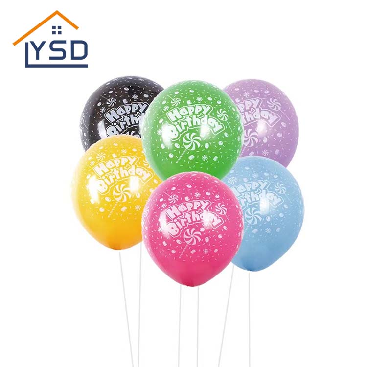 Χρόνια πολλά εκτυπωμένα μπαλόνια λατέξ είναι μπαλόνια με χαρούμενα γενέθλια κείμενο ή άλλα στοιχεία που σχετίζονται με τα γενέθλια που τυπώνονται πάνω τους. Τα μπαλόνια λατέξ που παράγονται από το YSD® πληρούν τα σχετικά πρότυπα και επικεντρώνονται στην προστασία του περιβάλλοντος.