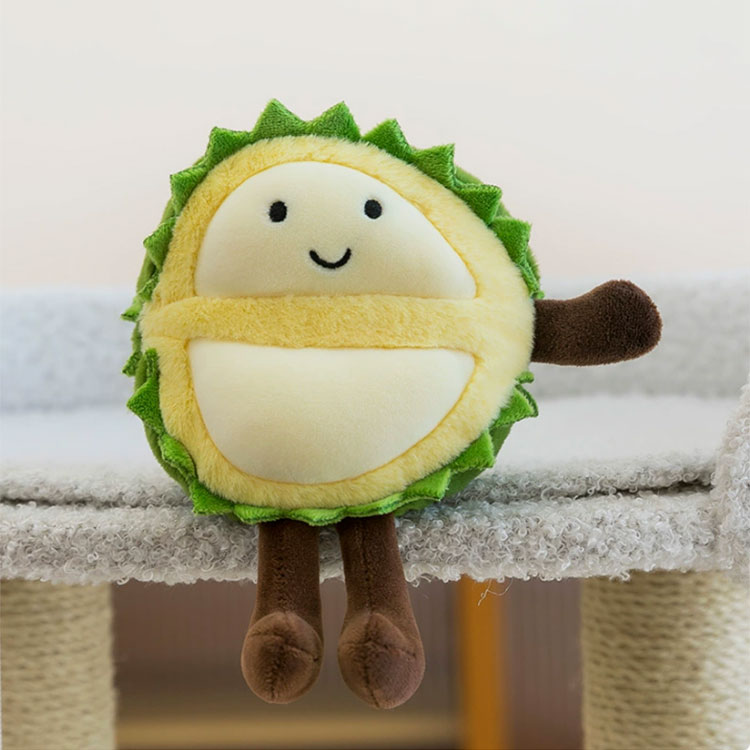 2. Ρεαλιστικές λεπτομέρειες: Το επάνω μέρος διαθέτει σχέδιο προσομοίωσης μίσχου φρούτων και το βελούδινο εξωτερικό κέλυφος αντιγράφει τη δομή ενός πραγματικού durian.