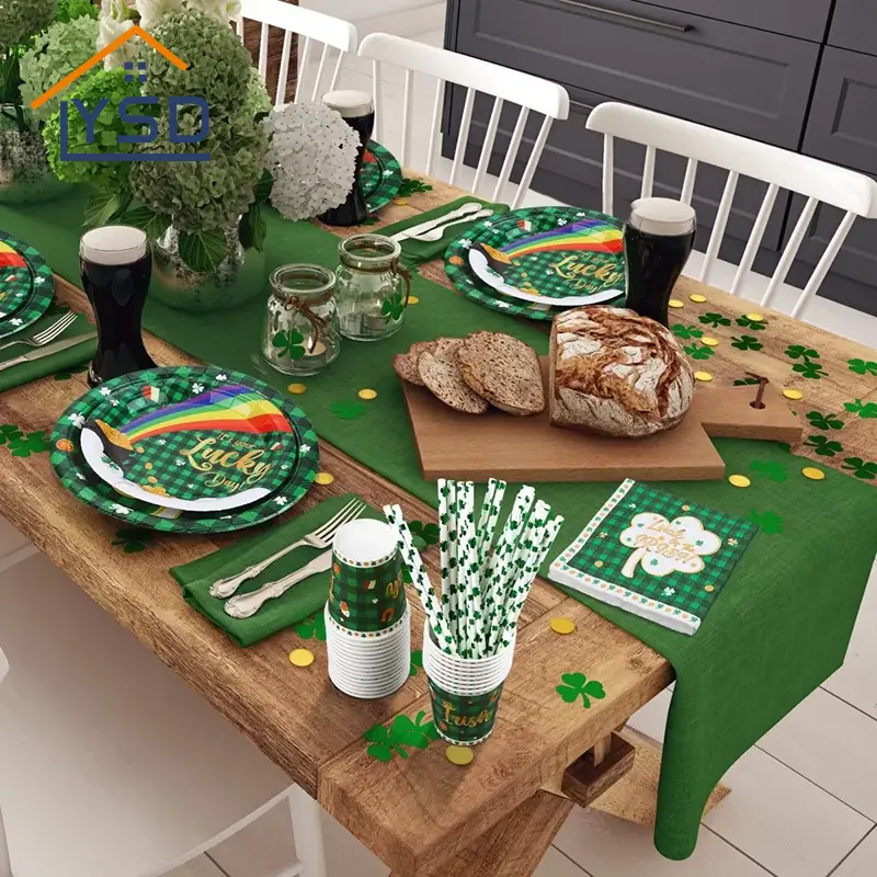 Η πιο ικανοποιητική πτυχή του σετ επιτραπέζιων σκευών μιας χρήσης για την Ημέρα του Αγίου Πατρικίου της YSD είναι η απόλυτη πρακτικότητα του. Πολλοί άνθρωποι φοβούνται το κουραστικό έργο του καθαρισμού μετά τις γιορτές, αντιμετωπίζοντας το τρομακτικό έργο του πλυσίματος. Αυτό το σετ επιτραπέζιων σκευών μιας χρήσης λύνει αυτό το πρόβλημα. Το σετ περιλαμβάνει επίσης μια πλήρη σειρά μαχαιροπήρουνων, συμπεριλαμβανομένων μεγάλων στρογγυλών πιάτων για κύρια πιάτα και μικρών τετράγωνων πιάτων για σνακ. Τα φλιτζάνια έχουν επίσης τέλειο μέγεθος για μπύρα και χυμό που δεν χυθεί. Είτε πρόκειται για ένα μικρό πάρτι μερικών δεκάδων είτε για μια επαγγελματική εκδήλωση για εκατοντάδες, μπορείτε απλά να αγοράσετε το σετ με βάση τον αριθμό των ατόμων, εξαλείφοντας την ανάγκη να εφοδιαστείτε με άλλα μαχαιροπίρουνα. Αυτό είναι ένα σημαντικό πλεονέκτημα.